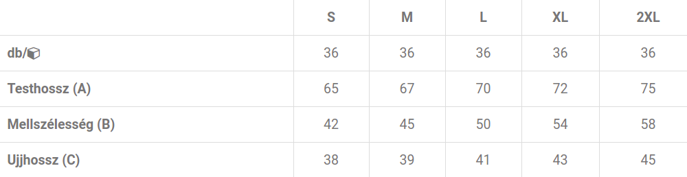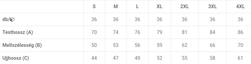 Férfi mérettáblázat
